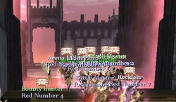 Players have 3 minutes to join parties, buff up, and get ready for battle. During this time, there is a divider separating each side from the center of the arena. This will disappear when the timer starts. At any time during the battle, you may leave the arena via the teleport located in each of the team rooms.